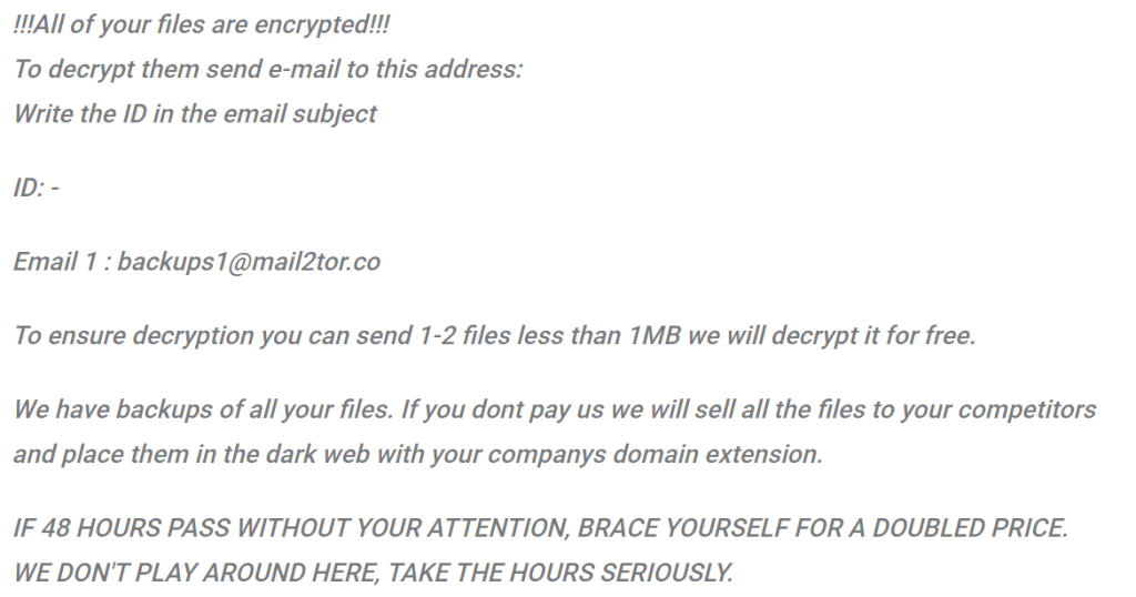 Bactor ransomware is a double-extortion malware, meaning it not only encrypts local files but also steals and threatens to publish data. The attackers claim to hold backups of victims’ files and threaten to leak or sell the data to competitors if no ransom is paid.