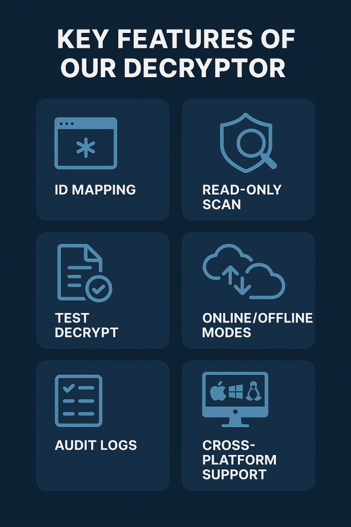 - Decryption ID Mapping: Reads the eight-character hexadecimal ID from ransom notes and file extensions to organize encrypted batches.