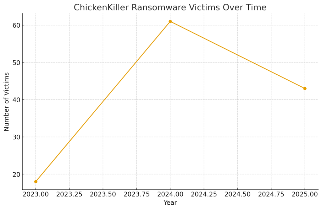 The ransomware has affected a wide range of sectors, from healthcare and financial institutions to manufacturing plants and educational organizations. These industries often maintain critical data that attackers view as high-value, making them attractive targets for extortion. Because ChickenKiller disrupts operational continuity and locks essential information, organizations without mature cybersecurity defenses or backup systems face severe consequences.
