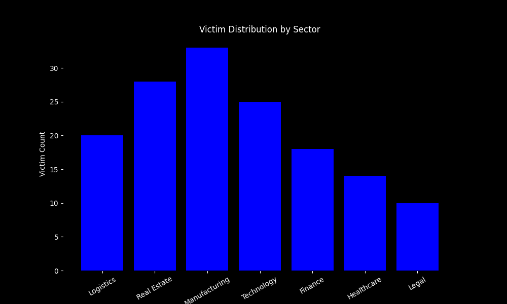 Coinbase Cartel victims span numerous industries and regions, reflecting opportunistic but targeted operations. Organizations in sectors such as logistics, manufacturing, technology, legal services, marketing, and real estate appear frequently, indicating that the group prioritizes data-rich and cloud-reliant environments.Activity charts