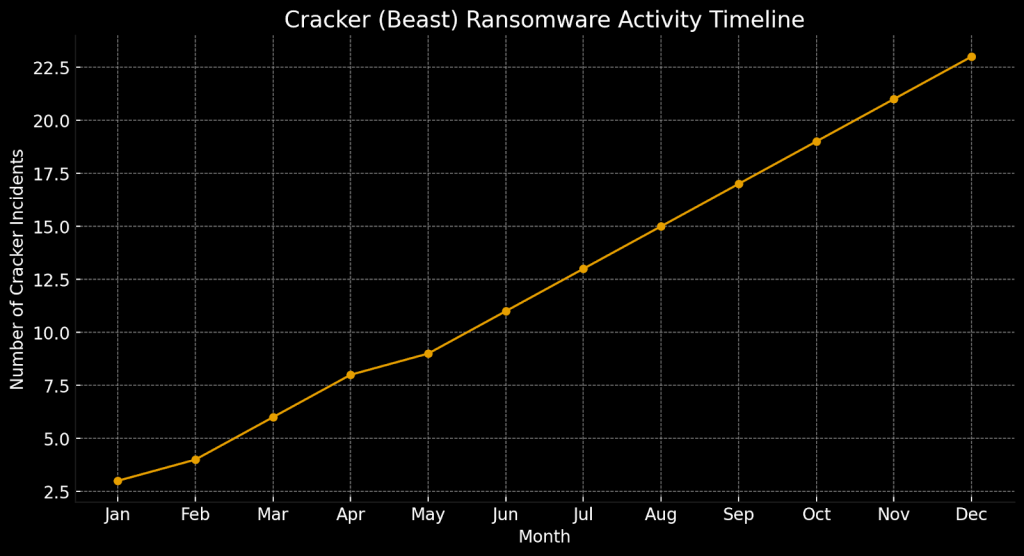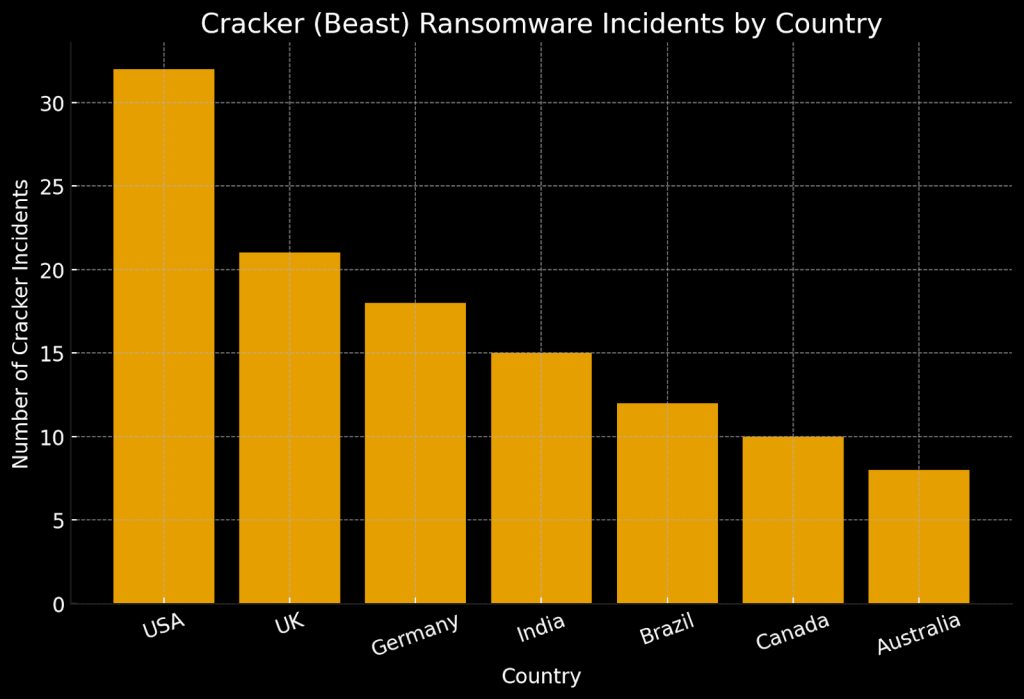 Cracker (Beast) tends to impact environments where cybersecurity maturity is uneven—home systems, small offices, and mid-sized businesses remain the most affected. Weak email filtering, outdated platforms, and insufficient backups contribute to infection frequency.