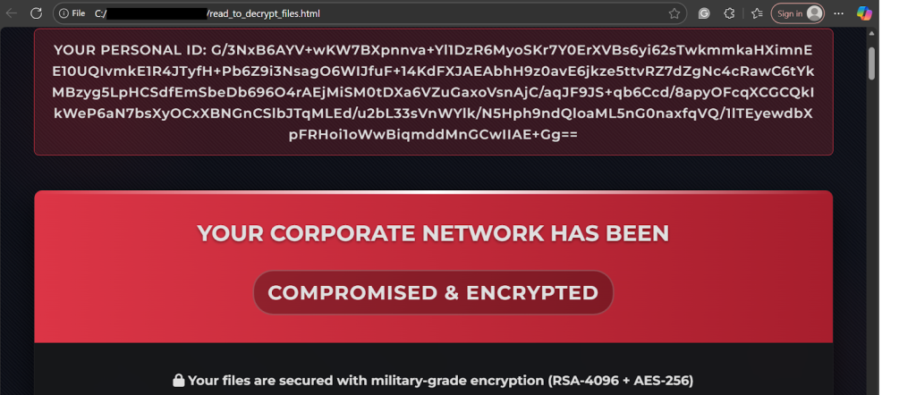 Your files have been secured using military-grade encryption (RSA-4096 + AES-256).