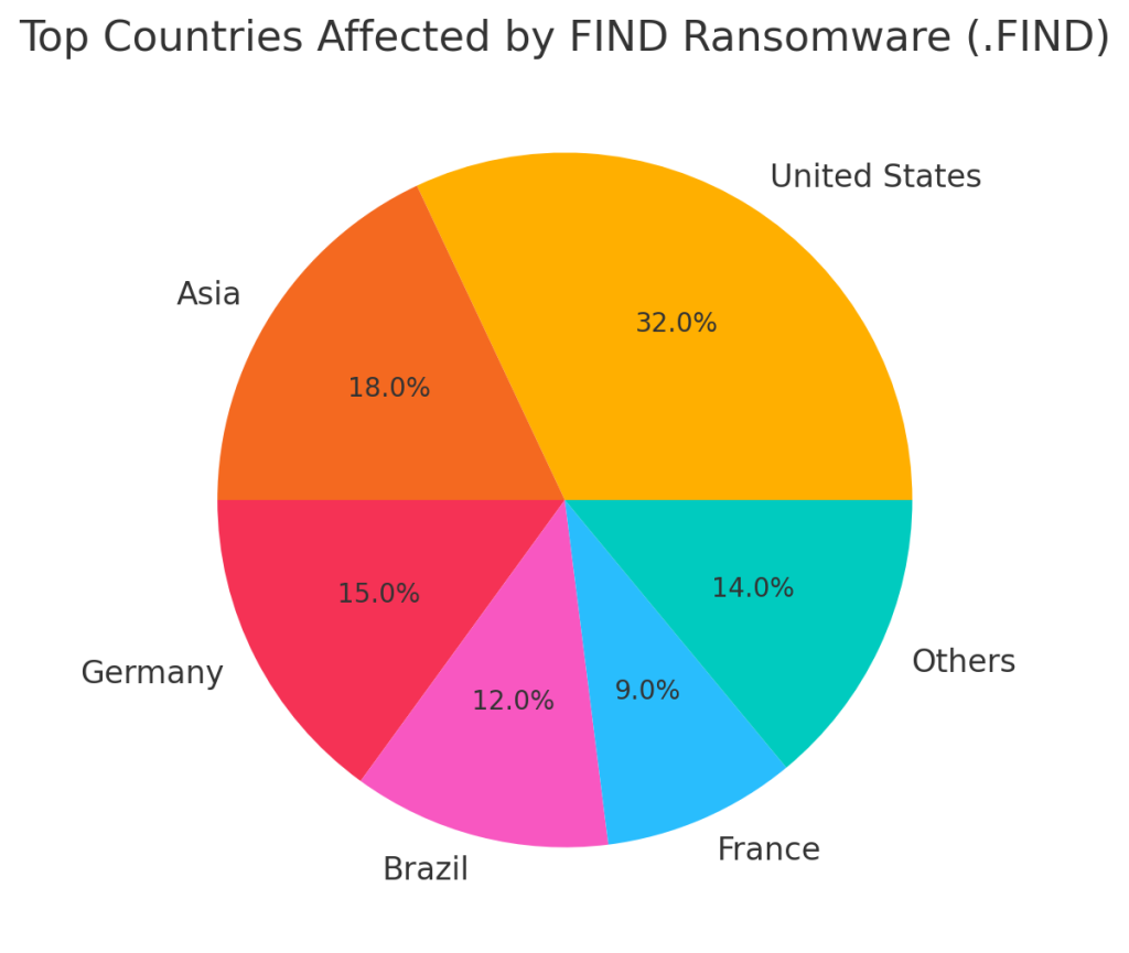 The FIND ransomware, part of the Dharma family, employs the same signature tactics seen across its variants. Once launched, it encrypts all accessible files — including shared network folders — and disables essential security features like the Windows firewall.