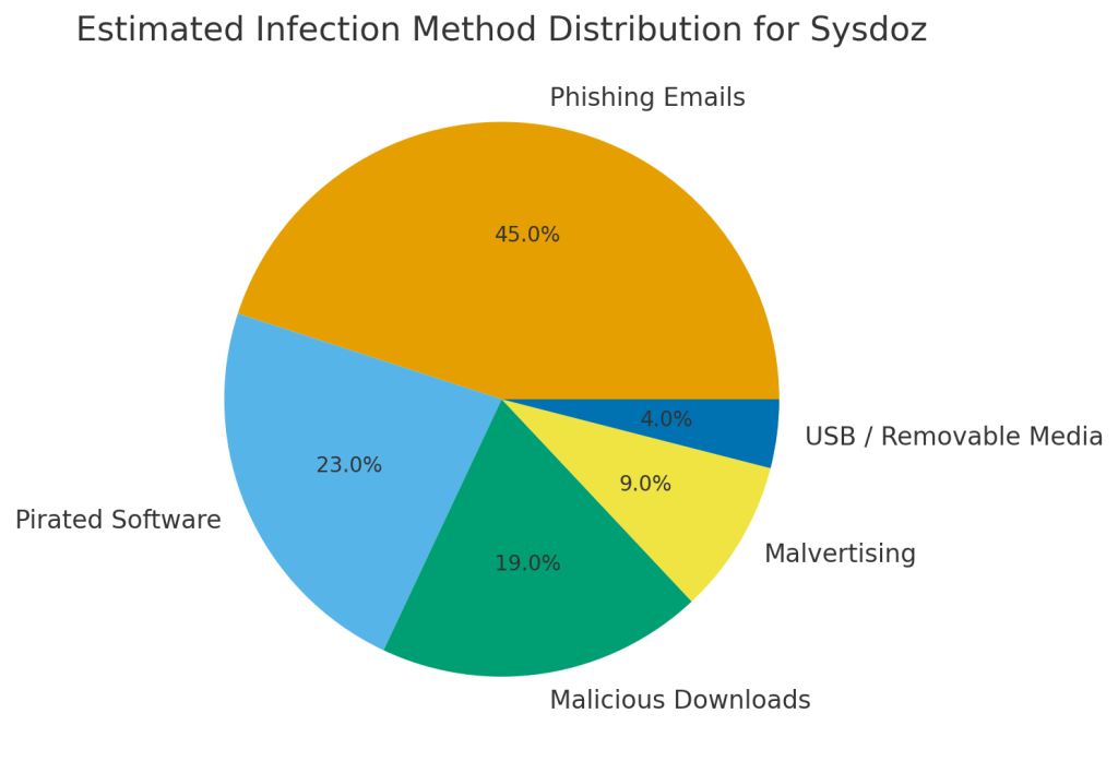 Sysdoz is distributed through channels frequently used by ransomware operators targeting individuals and small organizations. Infection often occurs when victims download malicious files disguised as legitimate software installers, documents, or compressed archives. These files may originate from unverified websites, cracked software sources, phishing emails, or torrent platforms.