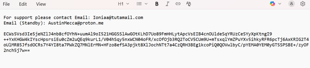 Ransom payment: Though sometimes mentioned as an option in ransom notes, direct payment is not recommended. Criminal groups often fail to deliver functioning decryptors, and paying may violate local regulations.