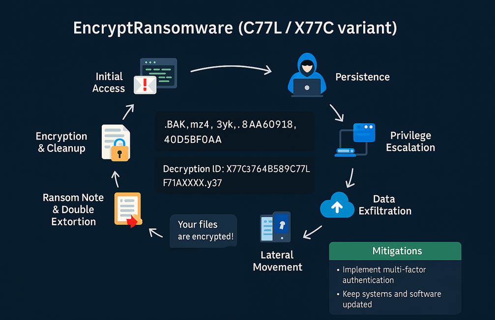 C77L/X77C, recognized by tags like “EncryptRansomware”, is a dangerous ransomware family. It is notable for: