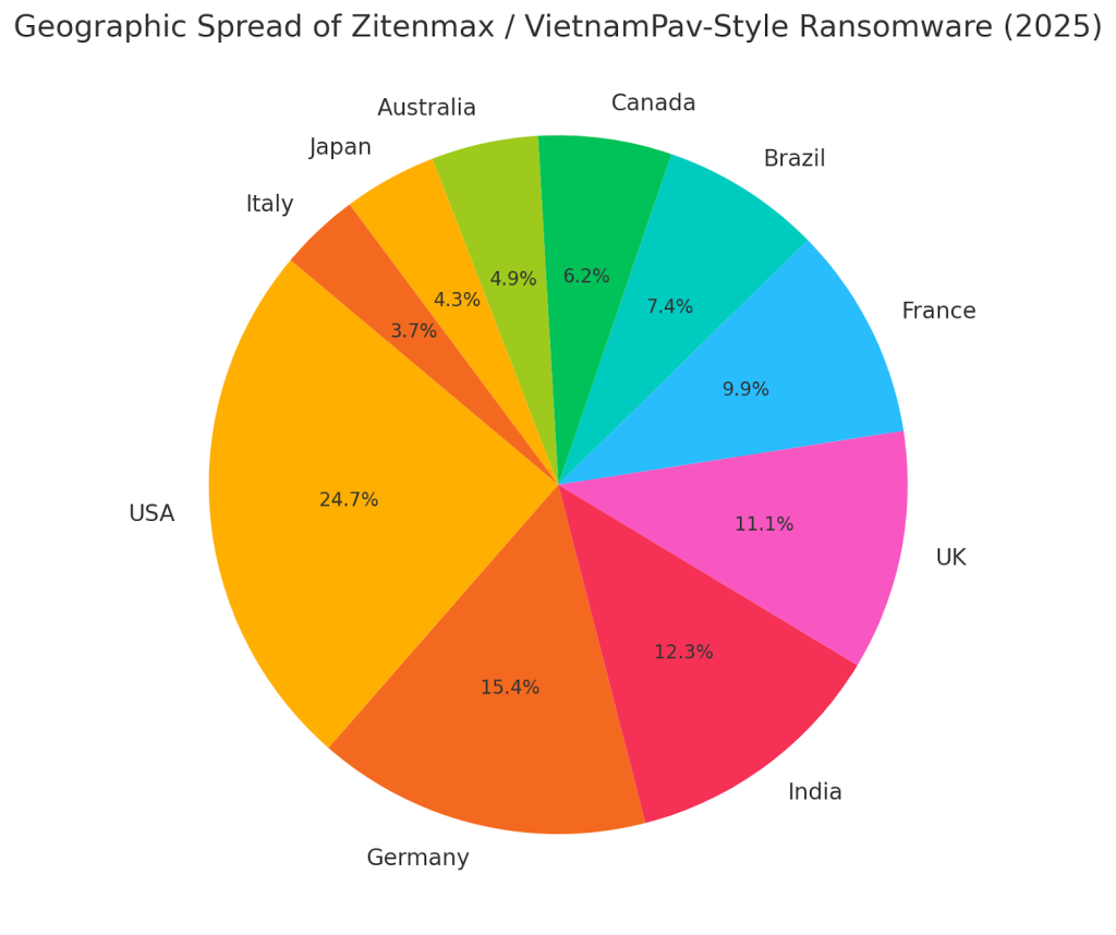 The Zitenmax / VietnamPav strain typically infiltrates systems through malicious email attachments, exploit kits, or vulnerable remote access services such as RDP or VPN gateways. Once inside, it encrypts accessible drives and maintains folder structure integrity while randomizing file names.